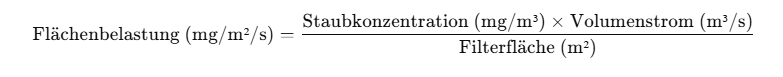 Die Filterflächenbelastung ist eine zentrale Kenngröße in der Filtrationstechnik. Sie beschreibt die Menge an Staub, die pro Quadratmeter Filterfläche aufgebracht bzw. abgeschieden wird – meist ausgedrückt in mg/m²/s.